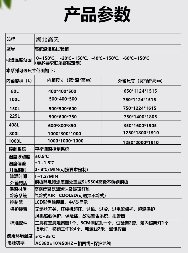•對(duì)電工、電子、家用電器、汽車、摩托車、化工及其它產(chǎn)品零部件及材料進(jìn)行溫度、溫度試驗(yàn)