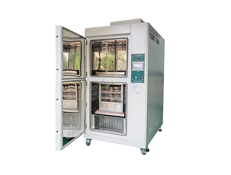 主流為雙腔體結(jié)構(gòu)(高溫腔、低溫腔 + 中間過渡區(qū)),雙腔體設(shè)計中,樣品通過機(jī)械臂或吊籃在高低溫腔之間快速轉(zhuǎn)移(轉(zhuǎn)移時間≤10 秒),避免中間溫度緩沖;
