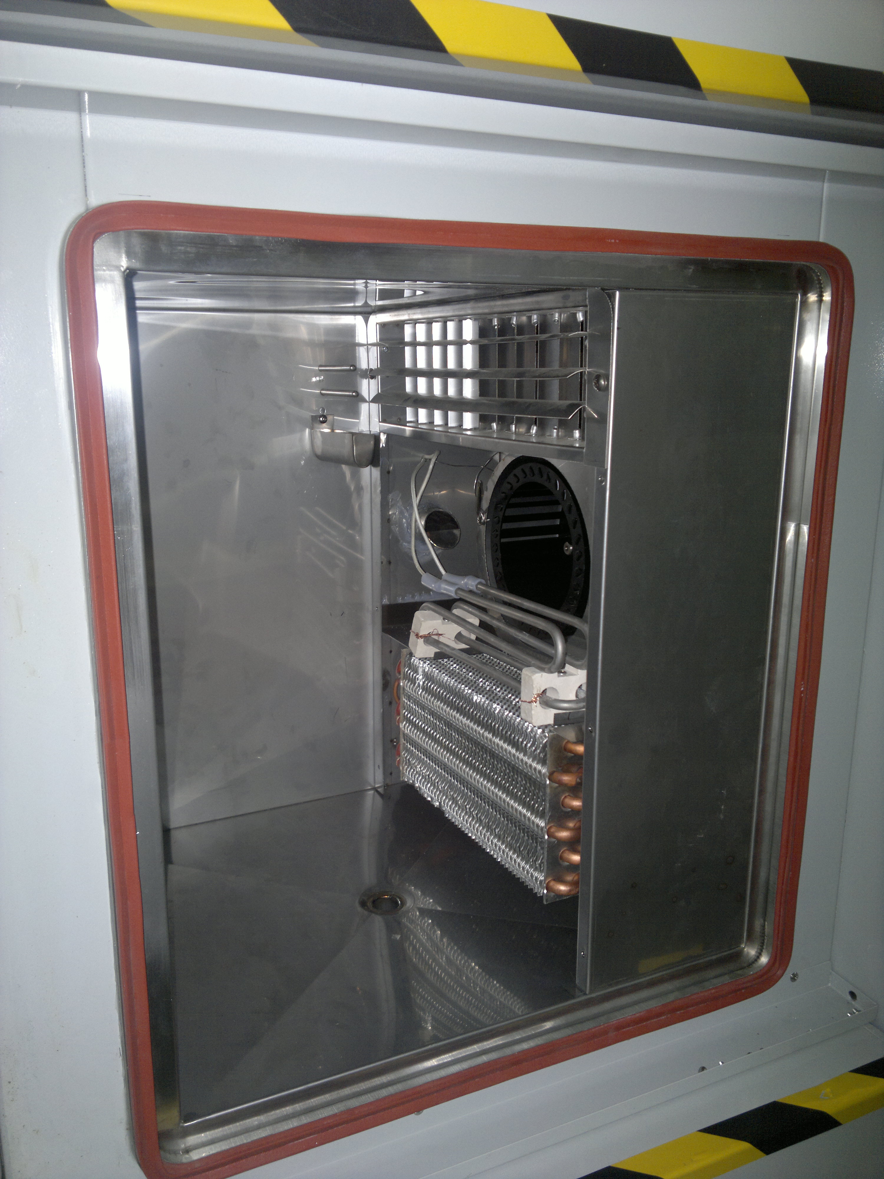 8、溫度循環輔助結構:采用特制空調型低噪音長軸風扇電機和耐高低溫不銹鋼多翼式葉輪,以達到強制對流、垂直擴散循環的效果,使箱內空氣能夠均勻地流動,確保溫濕度在箱內各個區域的均勻分布。